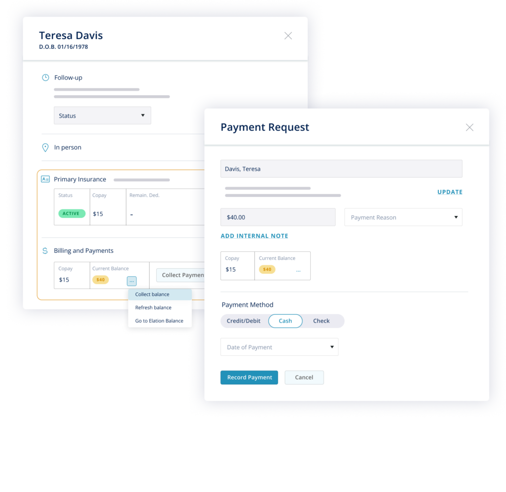 Collect copays directly within the EHR during the visit, ensuring financial processes stay efficient and secure.